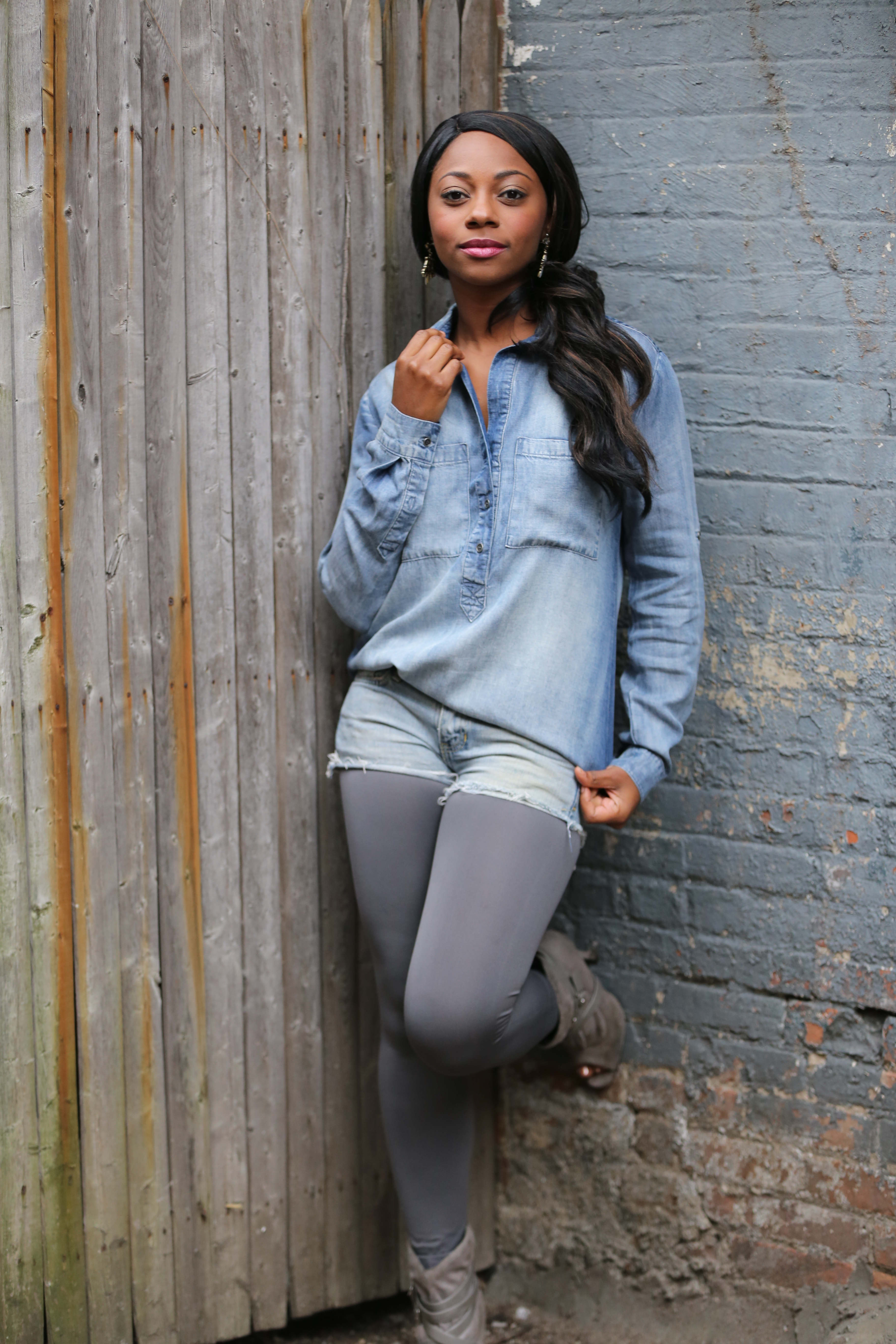 Brownie Marie in a Bella Dahl Two Button Shirt; shorts by Abercombie & Fitch. Photo by Decater James.